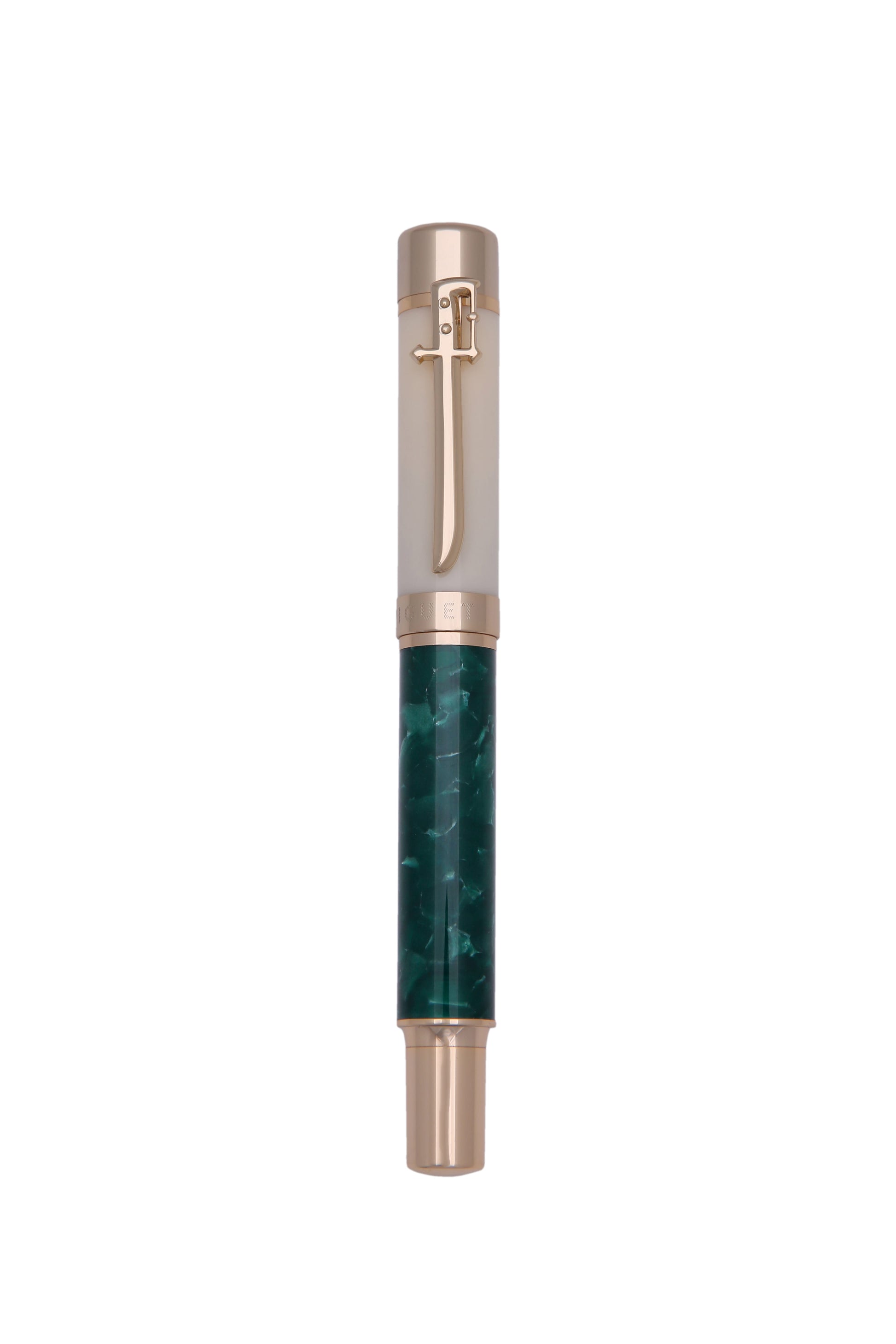 Piguet proudly presents its new special edition: Al Ardah! This special pen takes its body color from the Saudi Arabian flag and bears the KSA logo on the top. Piguet refers to the KSA logo with a very special golden plated sword clip which is also very important for Ardah dance.